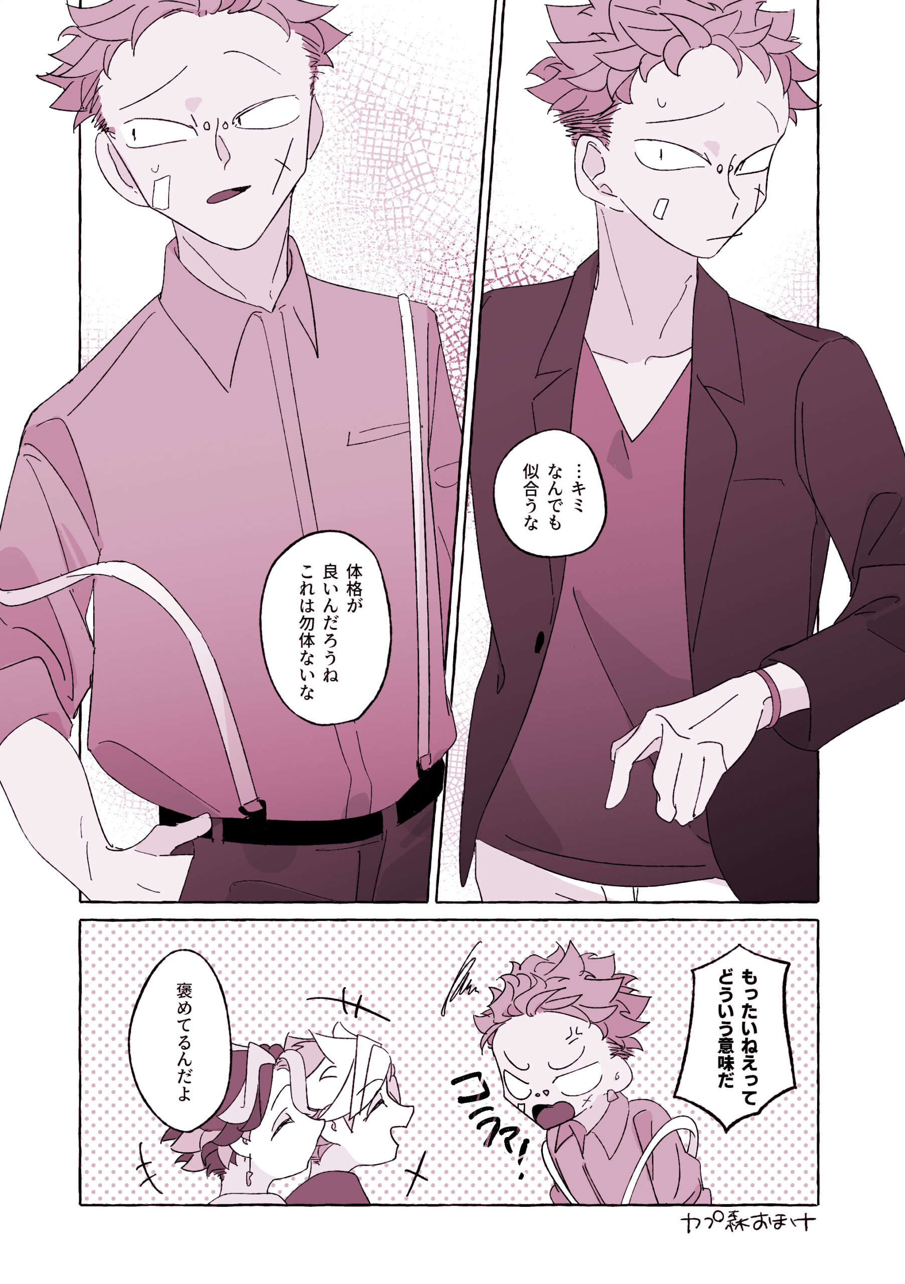 キザ系の着せ替え人形にされてるコワイ系の男良くないか なんかどっかで言ったような描いたような気もするが6人組だとスクワットくんが一番こうなんでも似合うというか そういう感じだと良いと思っています 一番洒落っ気の無い奴がなんでも着こなしてしまう…パンも体格が似てるけどもっとパツムチしているのでちょっと違うんだよな スクが一番ほどよくシュッとしています そういう話でした♨